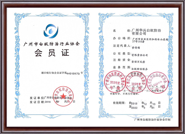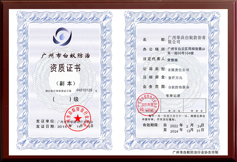 廣州(zhōu)市白蟻防治資質證(zhèng)書